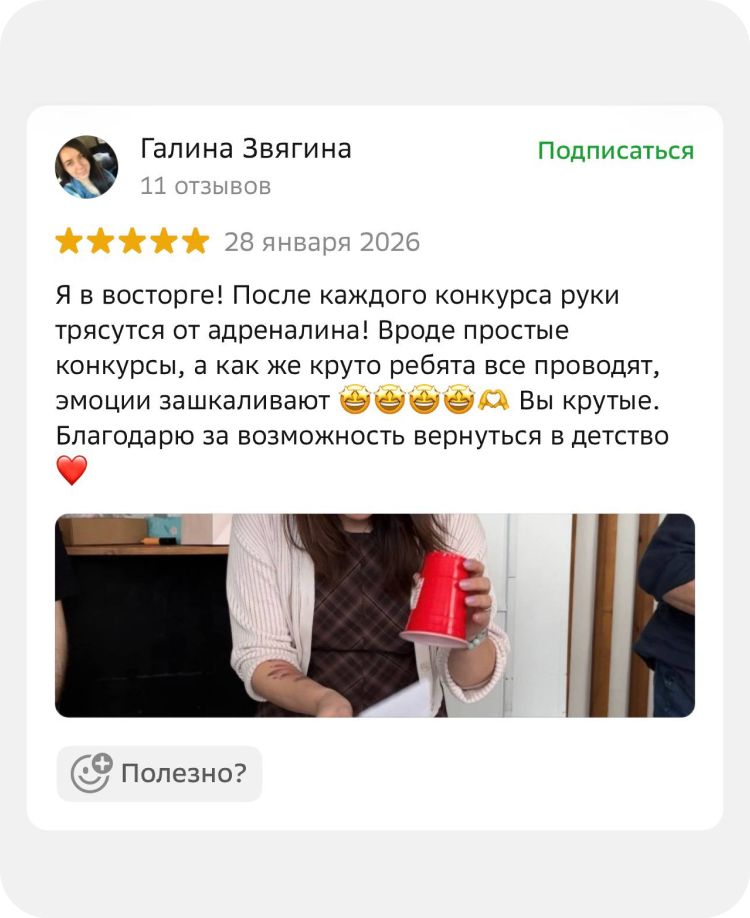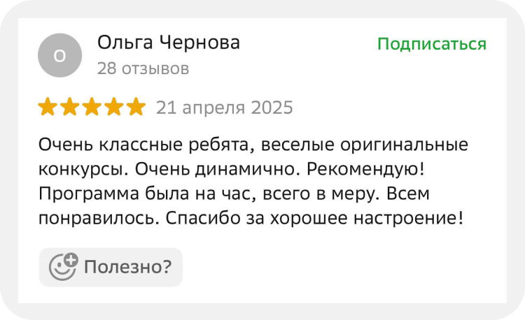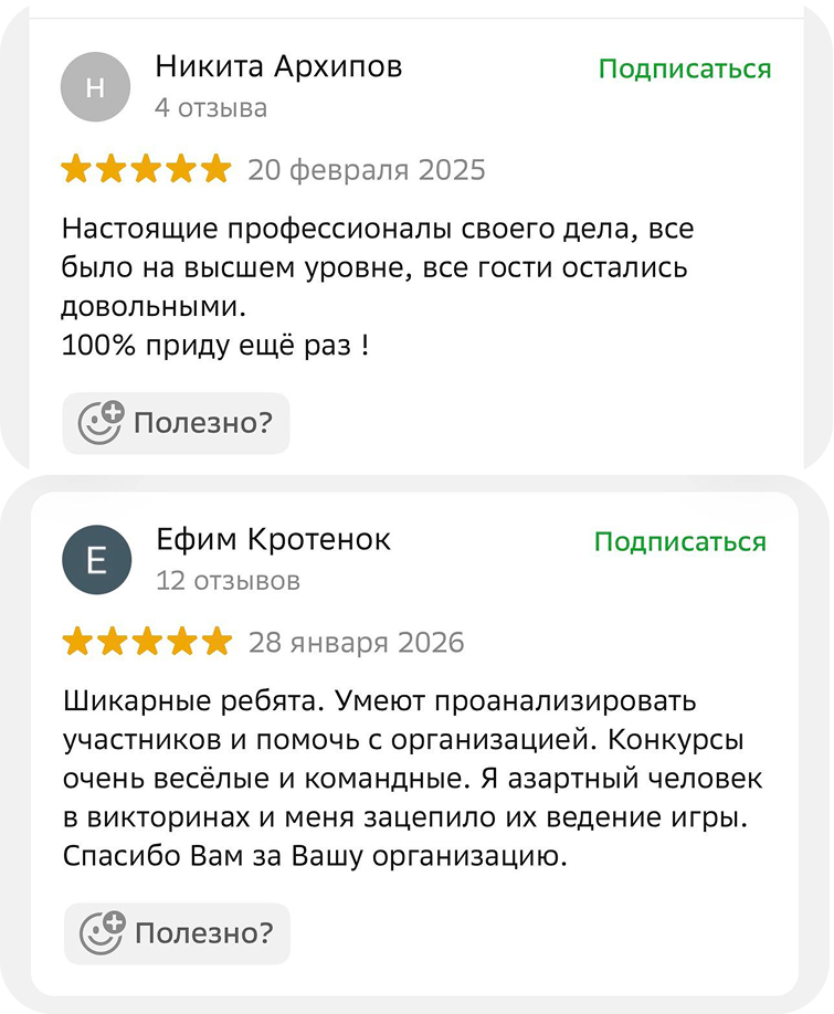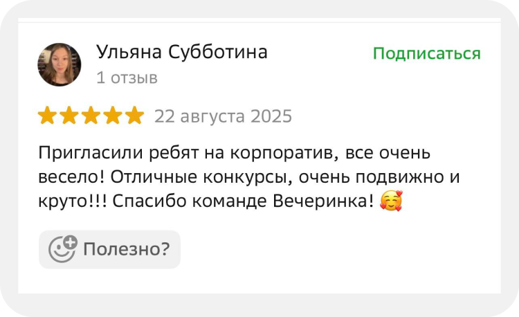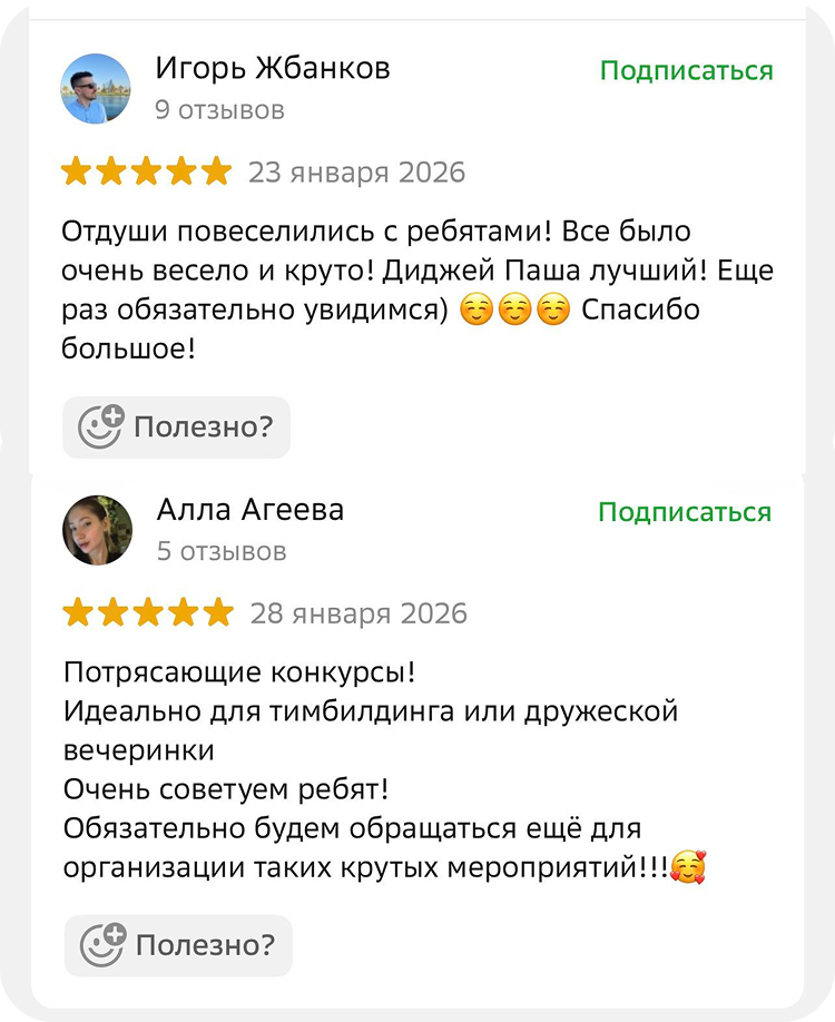 Программу мы подбираем на основе вашей аудитории, их интересов, степени активности, количества участников и возраста, а также от повода вашего события.
